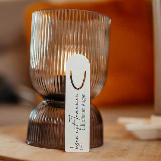 Lesezeichen aus Aluminium mit Spruch Lesen ist träumen mit offenen Augen
