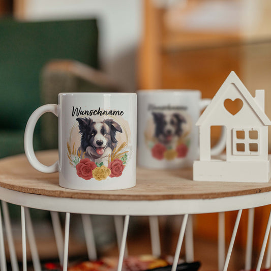 SPENDEN Tasse Personalisiert Border Collie mit Blumen und Name