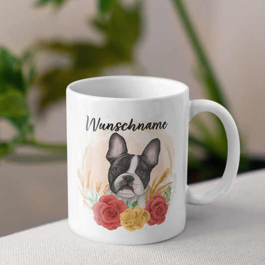 SPENDEN Tasse Personalisiert Französische Bulldogge mit Blumen und Name
