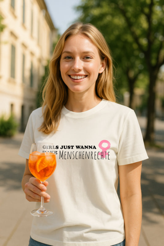 Feministisches Bio T-Shirt – „Girls just wanna have Menschenrechte“ – Statement Shirt für Frauen – Fair Fashion Unisex Shirt aus Bio-Baumwolle