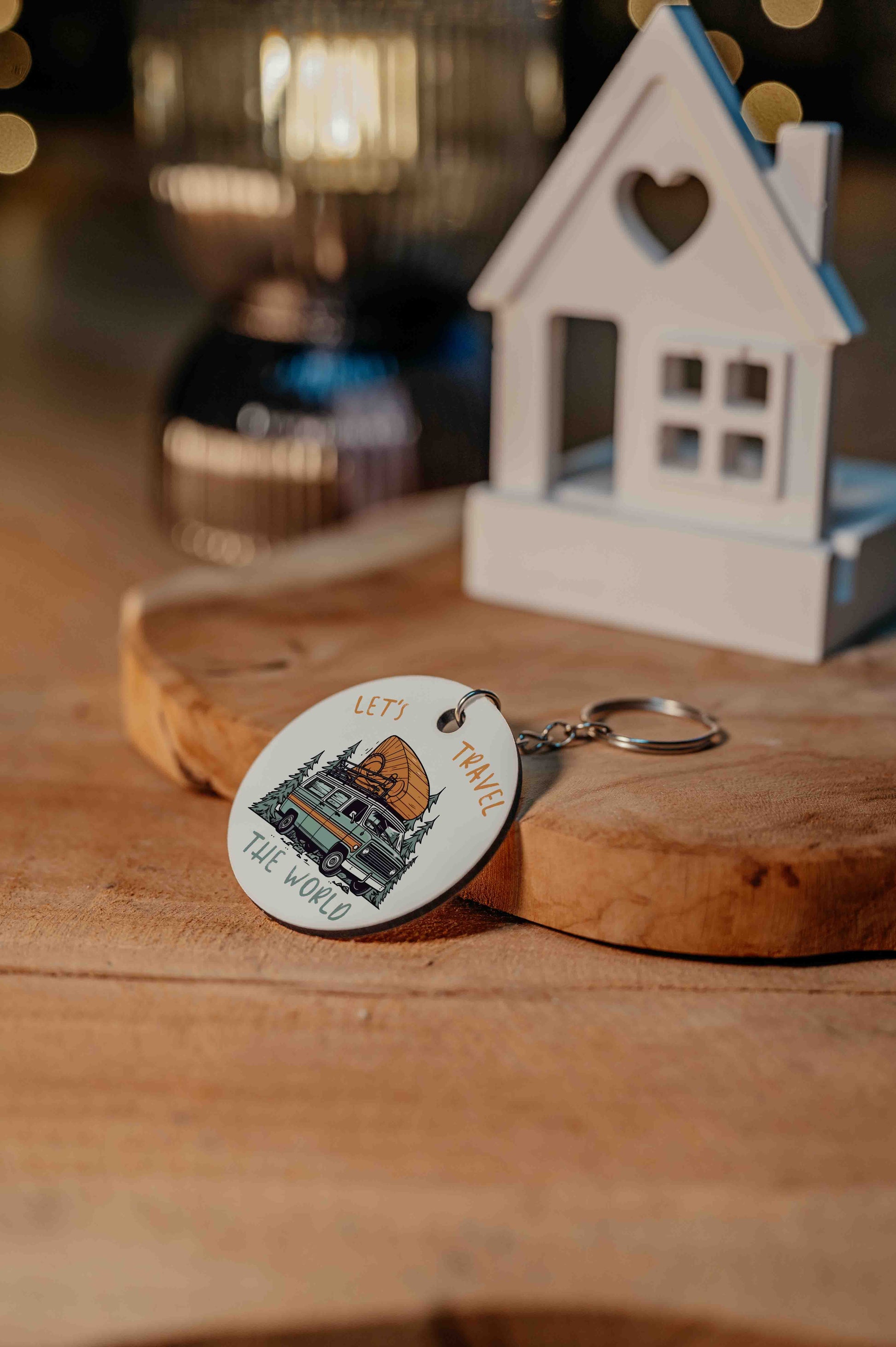 Mach deinen Schlüsselbund zum echten Hingucker mit diesem einzigartigen, beidseitig bedruckten Schlüsselanhänger im Camper-Design! Der runde Anhänger mit einem Durchmesser von ca. 5 Zentimetern zeigt einen charmanten Camper, der nostalgisches Flair und Abenteuerlust ausstrahlt.